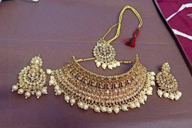 The intricate Kundan detailing paired with lustrous pearls creates a perfect balance of heritage and sophistication, making it the ideal choice for weddings, festive celebrations, and royal gatherings.