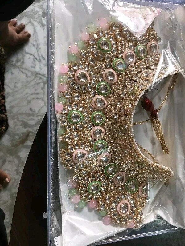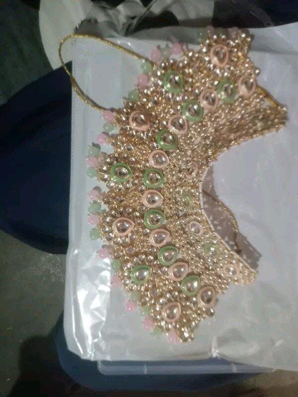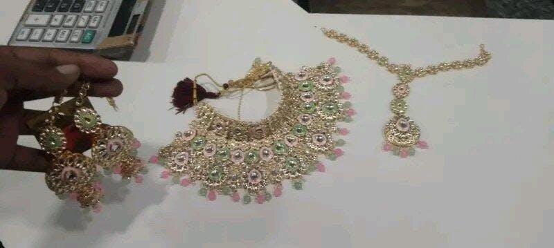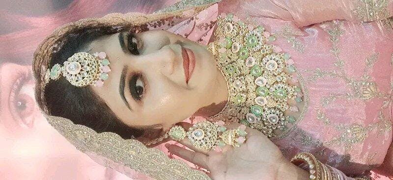 Add a royal yet refreshing charm to your bridal look with this Premium Multicolor Kundan Bridal Jewellery Set, a masterpiece that blends elegance with modern sophistication. Designed with high-quality Kundan stones, pastel pink and green accents, and luxurious gold plating, this set exudes a regal yet soft aesthetic — perfect for the contemporary bride.