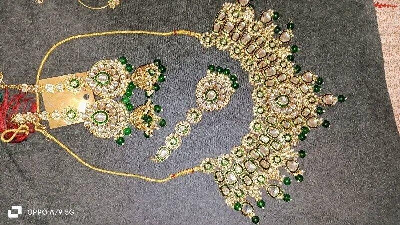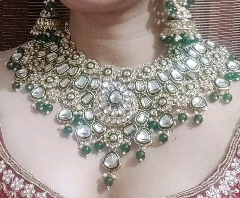 💎 Royal Green & Gold Premium Kundan Bridal Necklace Set – Luxury Wedding