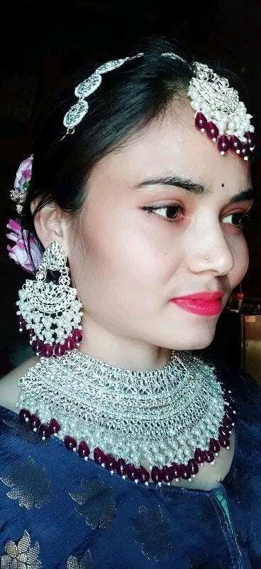 - A matching Maang Tikka (forehead accessory)