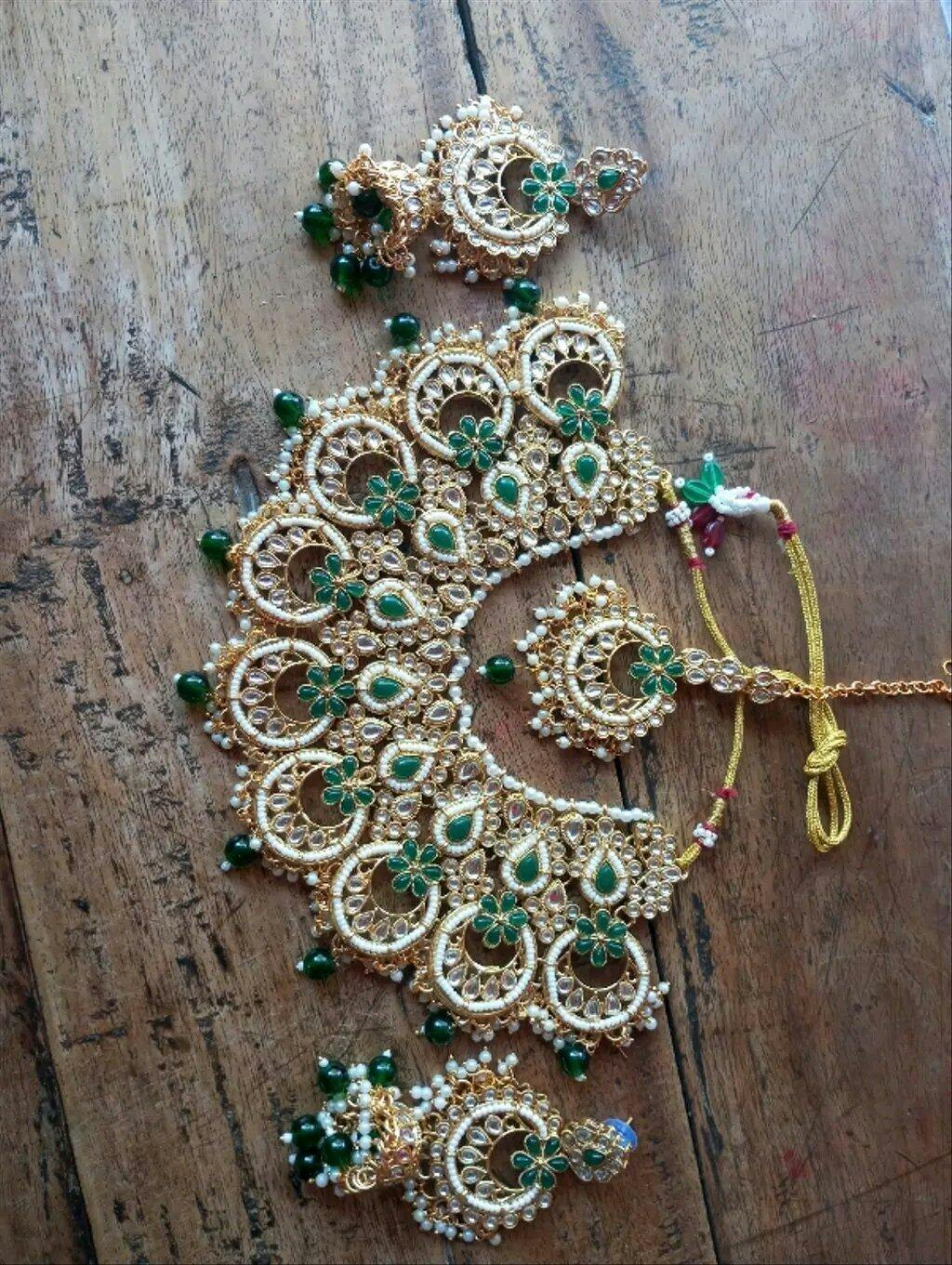 Elegant Green & Gold Premium Kundan Bridal Jewellery Set – Luxury Traditional Design