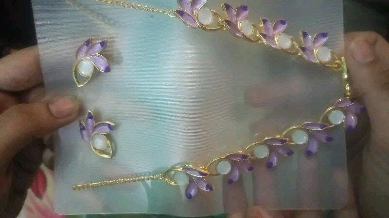 Add a touch of timeless charm to your look with this Elegant Modern Jewellery Set. Featuring a beautifully crafted gold-toned chain adorned with lustrous pearls and purple enamel leaf motifs, this necklace set exudes sophistication and style. The matching earrings complete the look, making it perfect for both festive celebrations and modern everyday fashion.