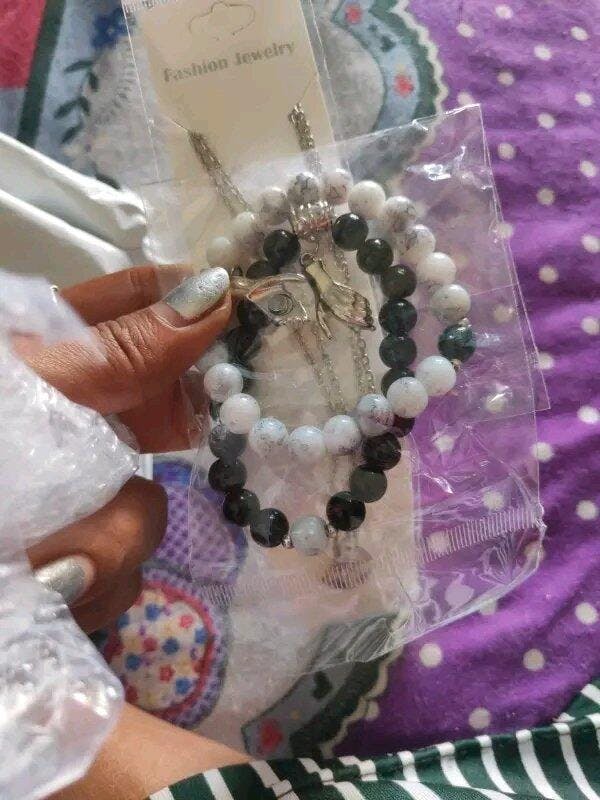 - "His & Hers" Contrast: The jewelry set is beautifully balanced with contrasting tones, offering a piece for everyone: the bracelets feature classic Matte Black Stone and elegant White Howlite Stone, while the necklaces use bright Silver-Tone chains.