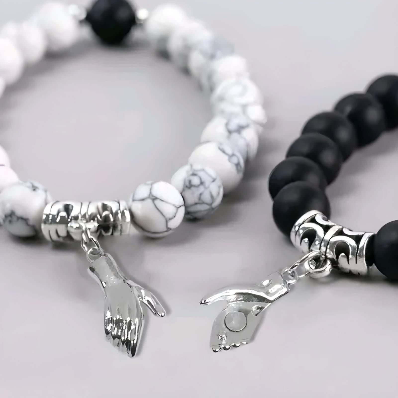 Deepen your connection with the Ultimate 4-Piece Magnetic Couple's Jewelry Set, a complete package designed to symbolize the unbreakable bond between two people. This collection includes both a pair of sophisticated necklaces and a pair of popular stone bracelets, all featuring unique magnetic closures to keep you connected, whether you're miles apart or standing side-by-side.