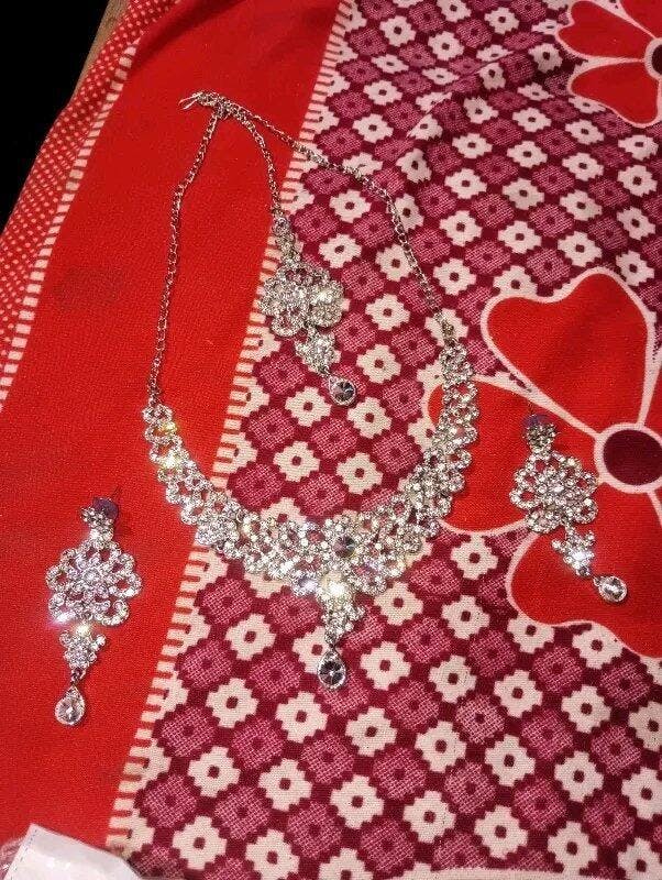 "Royal Bridal Diamond Finish Necklace & Earring Set – Exquisite Heavy Wedding Collection" Set of 2